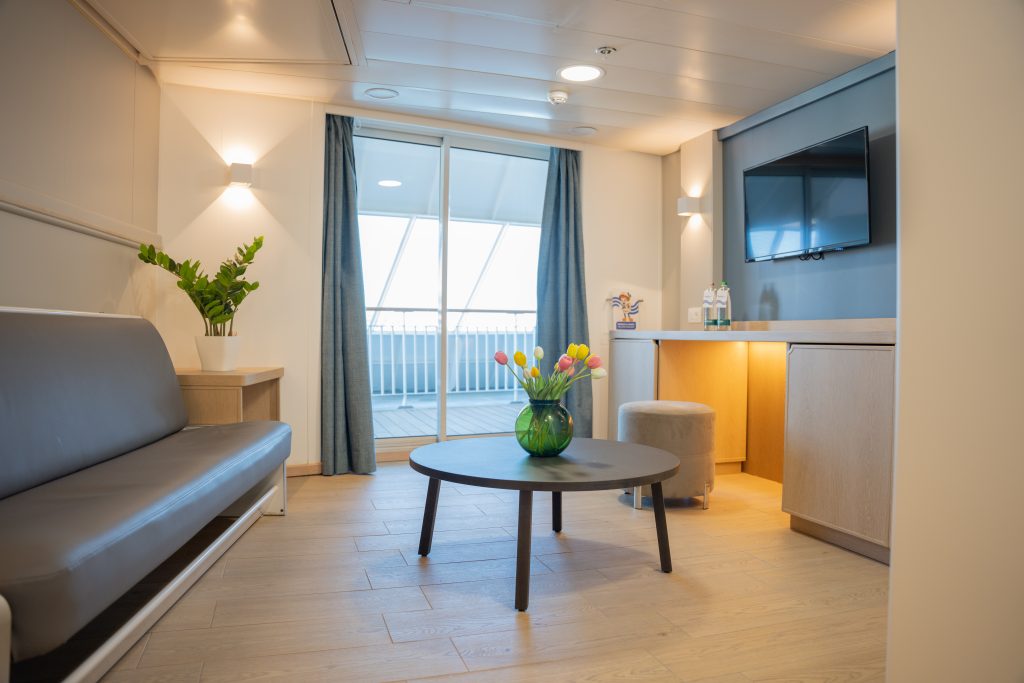 Die neuen Kabinen ermöglichen eine Reihe exklusiver Annehmlichkeiten für Gäste, die Wert auf Qualität und Liebe zum Detail legen. Dazu gehören ein spätes Auschecken für eine besonders entspannte Abwicklung der Ein- und Ausschiffungszeiten, ein myGNV-Punkte-Multiplikator zur zusätzlichen Belohnung der Treue, ein Gästeset sowie ein Willkommenspaket. Darüber hinaus genießen Reisende eine Premium Sleep Experience mit hochwertiger Ausstattung und – in den Suiten – den Komfort eines Fernsehers in der Kabine.